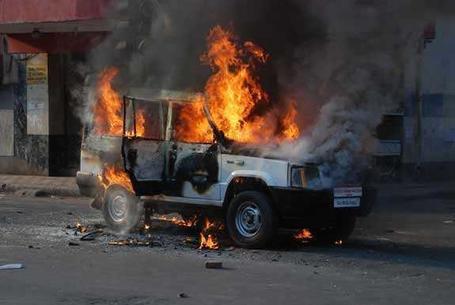 When the police were busy in crowd control near Teen Darwaja, another group of violent protestors attacked a government vehicle near Relief Cinema and set it ablaze.” Read more.
